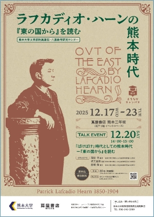 2025年12月17日(水)〜23日(火)には熊本市内にある蔦屋書店熊本三年坂で熊大まちなかキャンパス「ラフカディオ・ハーンの熊本時代―『東の国から』を読む」を開催します。また20日(土)には「『ばけばけ』時代としての熊本時代―『東の国から』を読む」というトークイベントも予定しています。ぜひ気軽に参加していただければと思います。