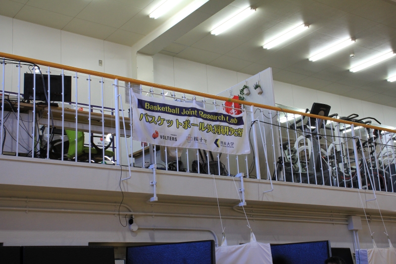 岡村さん 熊本大学の渡鹿体育館は、2024年7月にネーミングライツにより「VOLTERS GX」という名称になりました。ヴォルターズのクラブハウス機能を持つ練習場になっており、体育館の2階に私たちスポーツ教育研究会が活動する「バスケットボール共同研究室」も設置されています。この研究会は、大学のゼミのような形式ではなく、サークルのように学生が自主的に参加して、さまざまな役割を担っています。