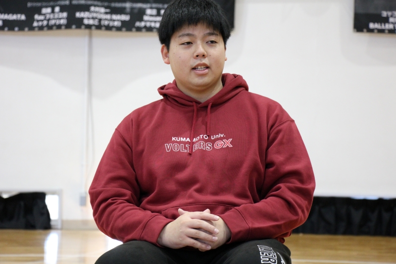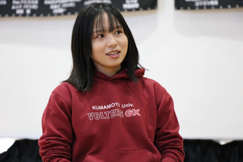 入江さん 私は鹿屋体育大学大学院に在籍しており、連携大学院教育プログラムを活用して熊本大学で研究しています。もともとは工学部で超音波を用いた筋肉測定の研究を行っていました。ニュースでヴォルターズとの共同研究について知り、参加を決めました。今はまだ直接選手を測定するまでには至っていませんが、この活動での経験は、今後の自分の研究に必ず役立つと考えています。