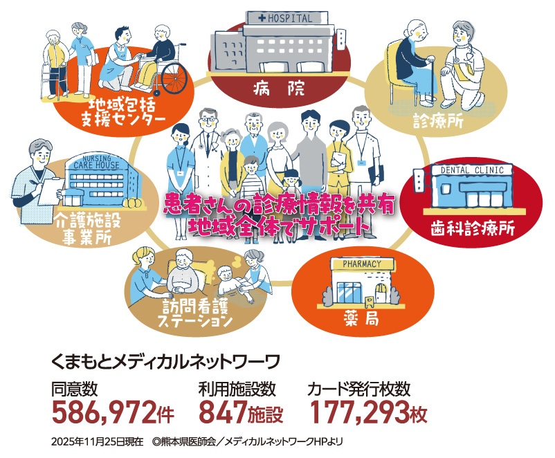 熊本は、藩校「再春館」に始まる医学の古い歴史を有する。北里柴三郎など日本近代医学の礎を築いた研究者たちの出身地として知られ、現在は熊本大学による先端医学の研究が注目される。関係者らの地域医療への思いは熱い。独自の医療情報網「くまもとメディカルネットワーク」を普及させて診療や治療に役立てるなど、確かな歩みで県民の安心と安全を支えてきた。そんな熊本にも、医療機関の人手不足や経営難といった日本を取り巻く医療の課題が立ちはだかる。一方で、治療法の進歩やAIをはじめとする先端技術の導入など明るい話題も多い。2026年新春に当たり、熊本大学の小川久雄学長と熊本大学病院の平井俊範病院長、そして熊本県医師会の福田稠会長による鼎談の機会を設け、医療の現状や展望について聞いた。併せて、小川学長には、新しい学環の創設で話題を呼ぶ熊本大学の取り組みについても話を聞いた。