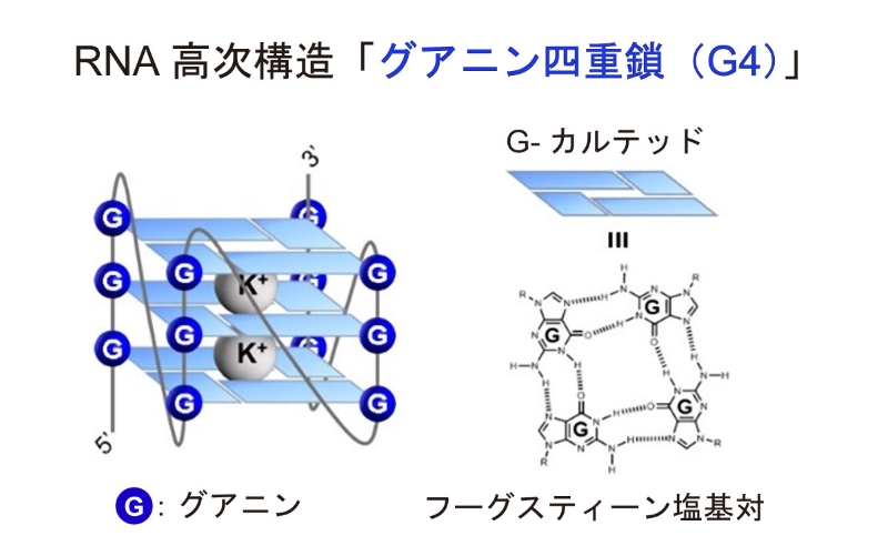 ![]() RNA高次構造「グアニン四重鎖(G4)」のイメージ図 |
