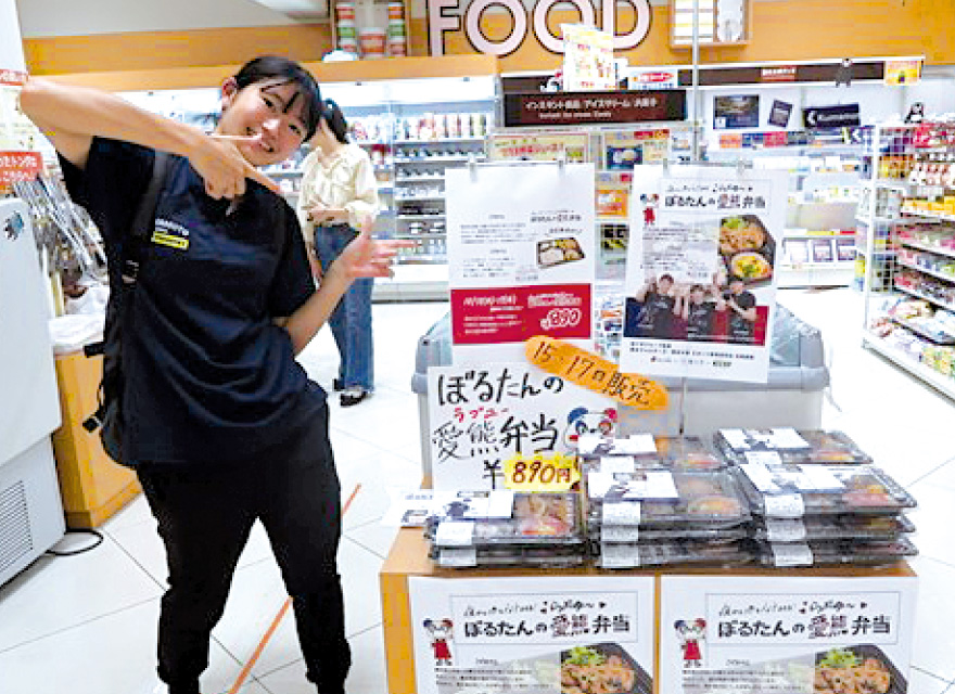 熊本ヴォルターズ選手に食の好みをヒアリングし、桜十字の管理栄養士さんから指導を受けて、熊本県産の食材だけを使ったお弁当を企画。和水町の業者さんに製造してもらい、試合会場や学内の売店での販売も学生が行いました。