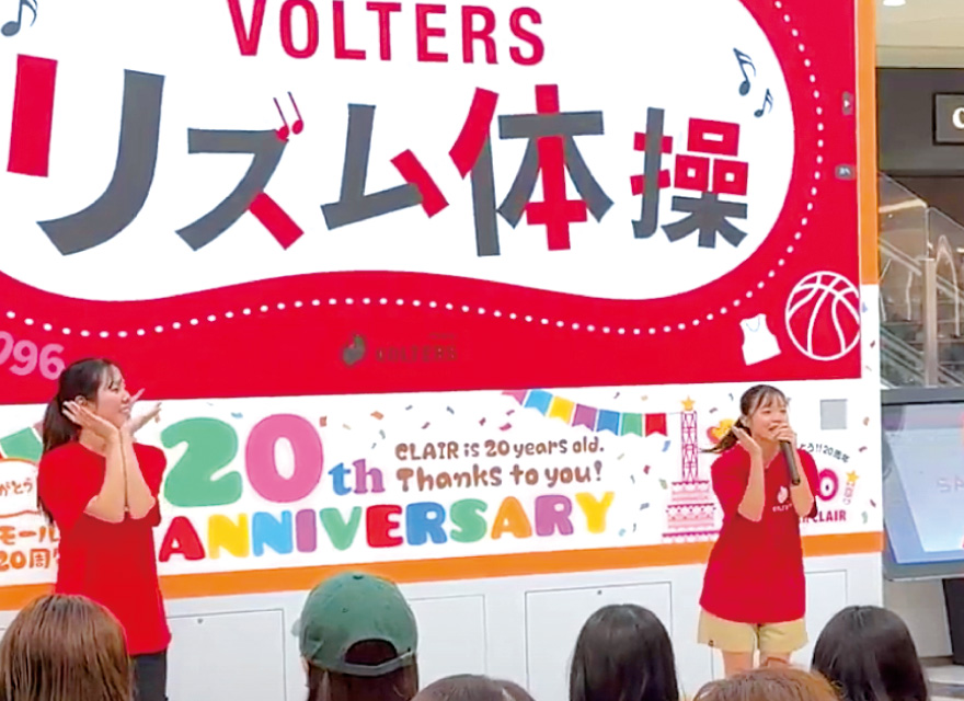![]() ショッピングモールで開催されたパブリックビューイングで学生が実施した「ヴォルターズリズム体操」指導の様子 |